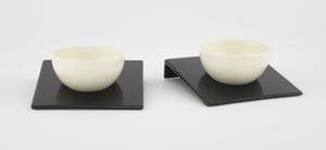 Tête-à-tête de tasses bol sur coupelle carrée oblique, céramique...