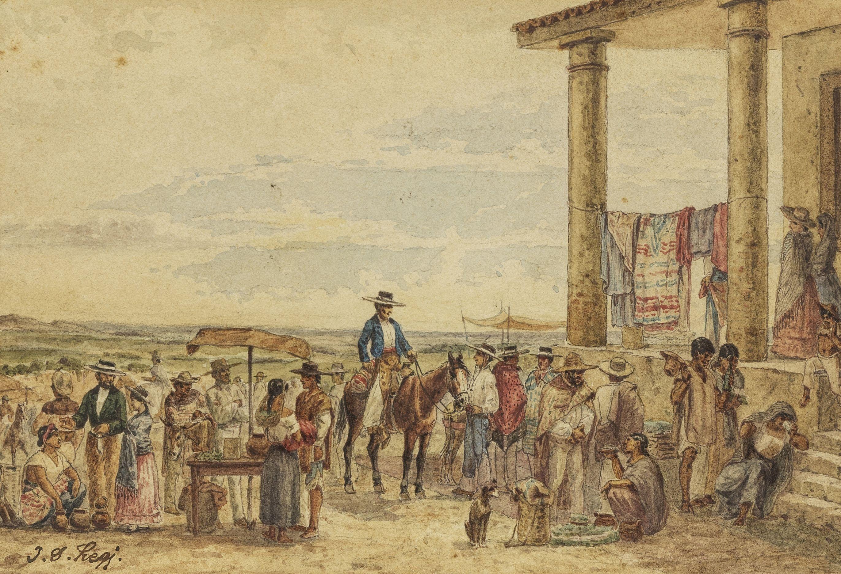 Scène de marché en Amérique du Sud, aquarelle sur papier, 13x19,5 cm