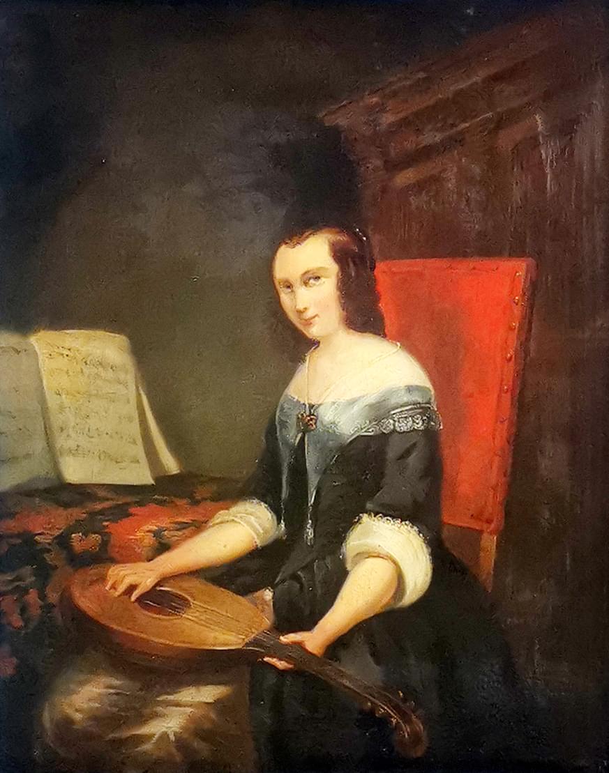 Musicienne, huile sur toile, signée, 28,5x23 cm