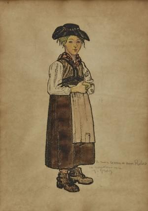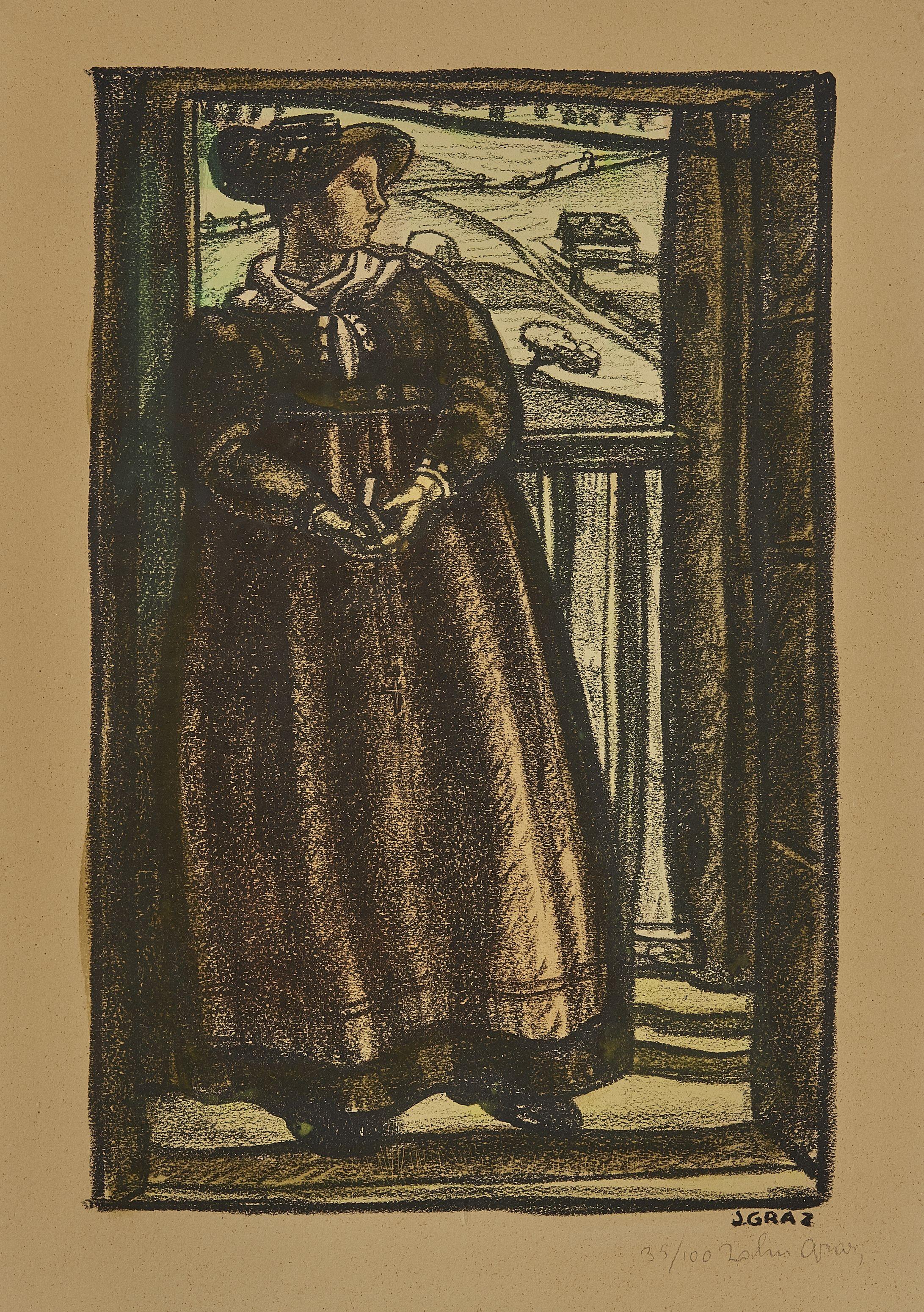Jeune femme d'Evolène au balcon, huile sur toile, signée,