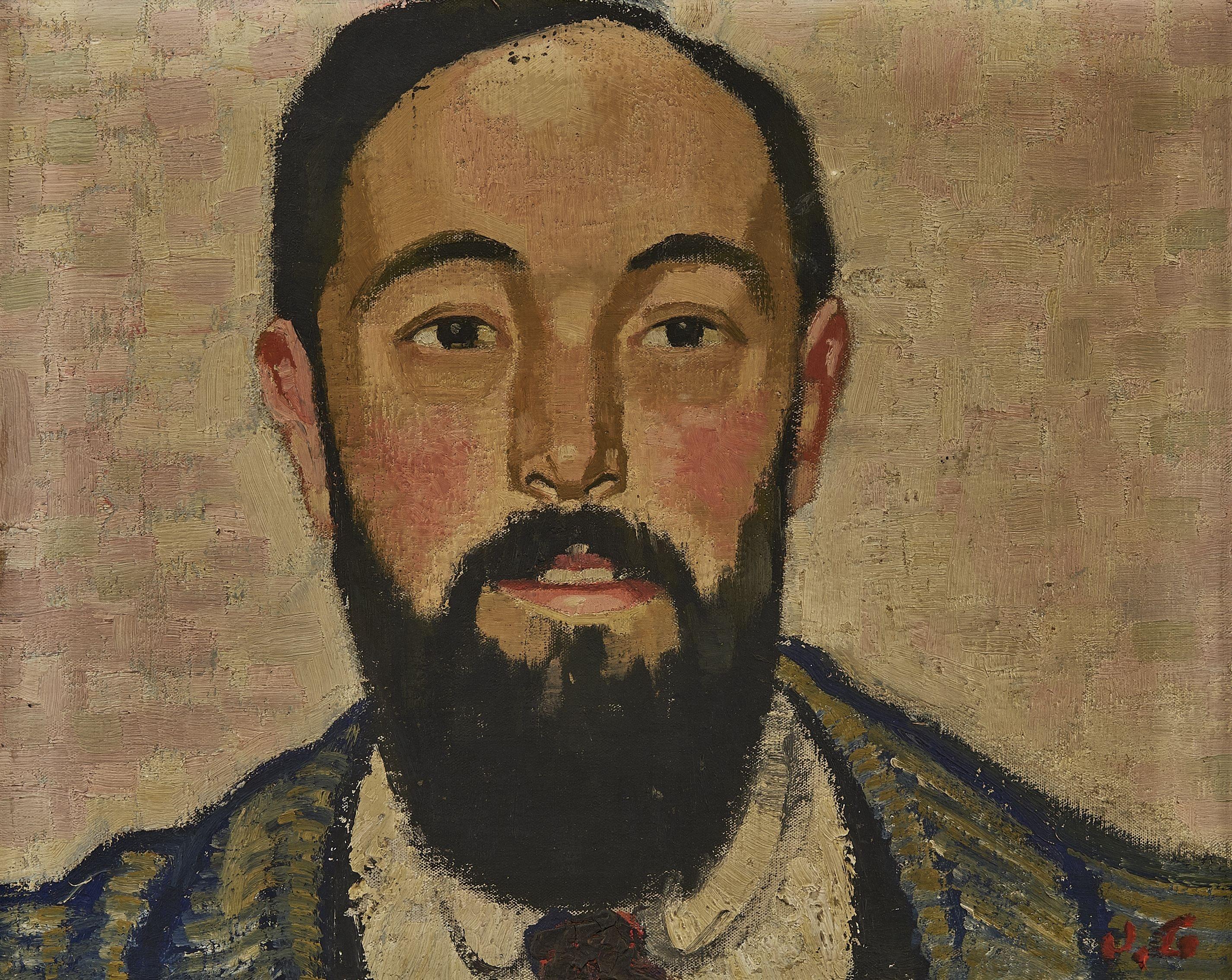 Jeune femme d'Evolène au balcon, huile sur toile, signée,