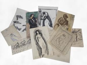 Ensemble de 10 études de personnages, aquarelle encre et fusain...