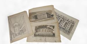 Ensemble d'études architecturales, aquarelle encre et fusain sur...