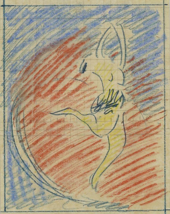 Figure en lévitation, encre et pastel sur papier, 37x16,5 cm