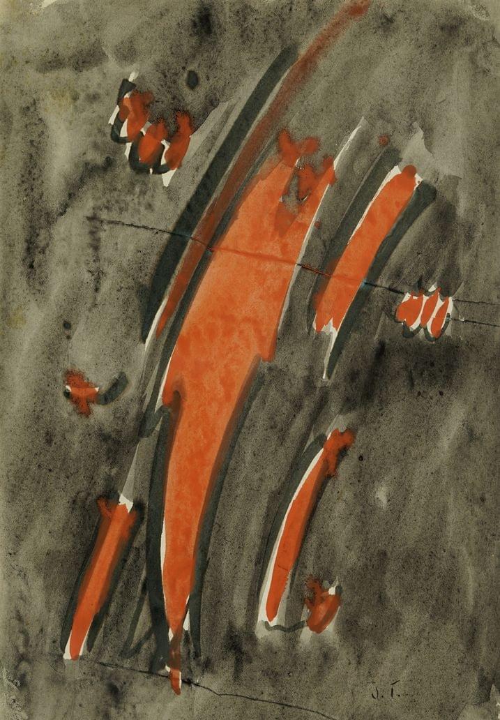Deux compositions abstraites, aquarelles sur papier, monogrammée...