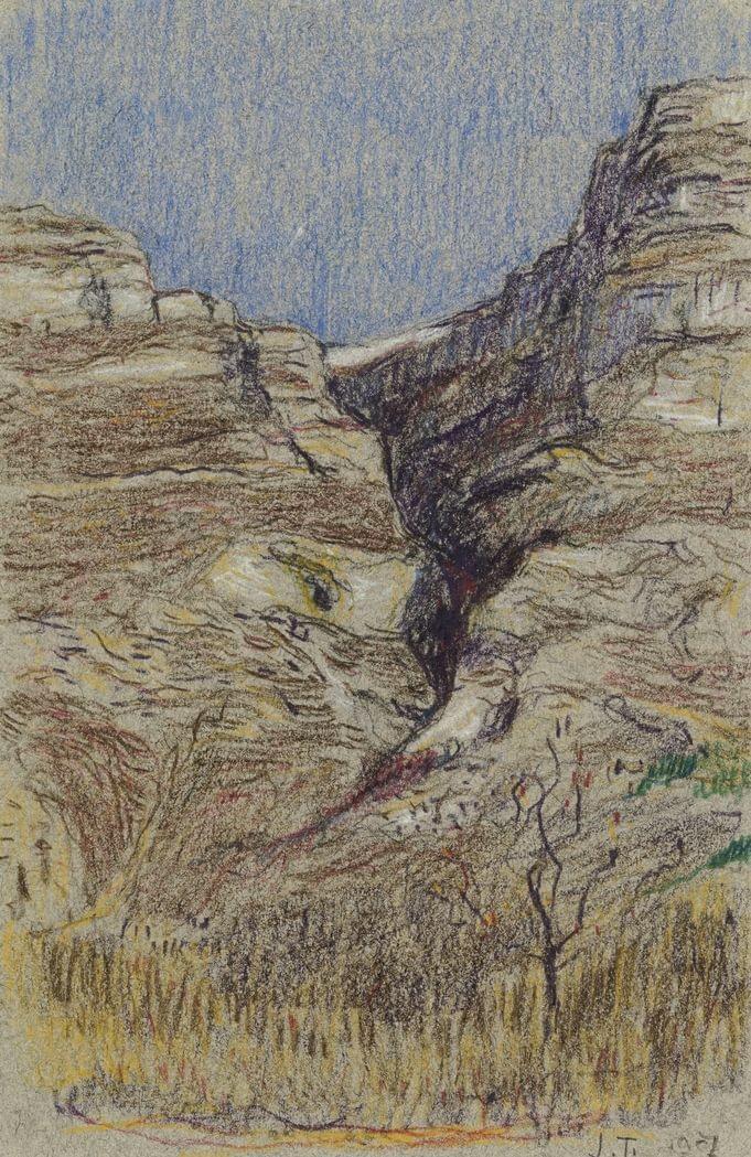 Au pied du Salève, mine de plomb, crayons de couleurs sur papier...