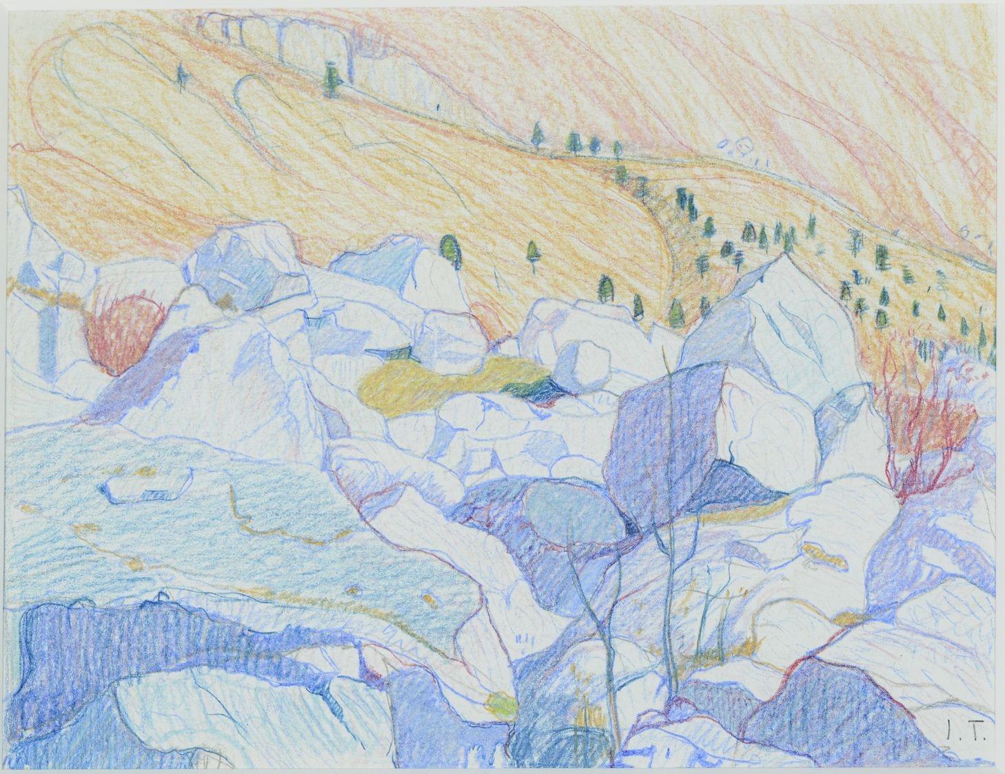 Montagne, crayons de couleurs gras sur papier, 12,5x17 cm