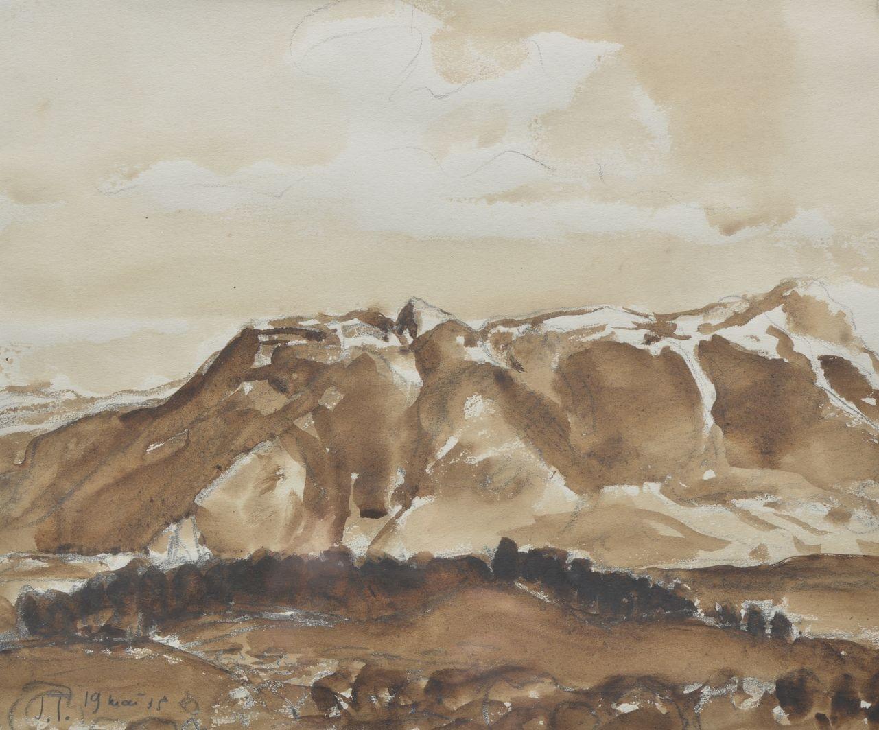 Vue des Alpes, crayon sur papier monogrammé, 18x30 cm