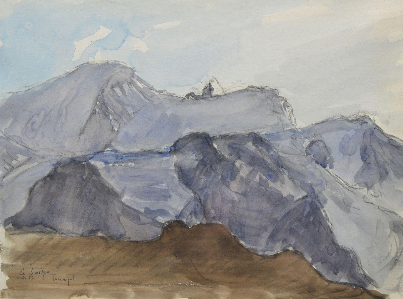 Le Susten, aquarelle sur papier signée, située et datée oct. 56, 29 x 39 cm