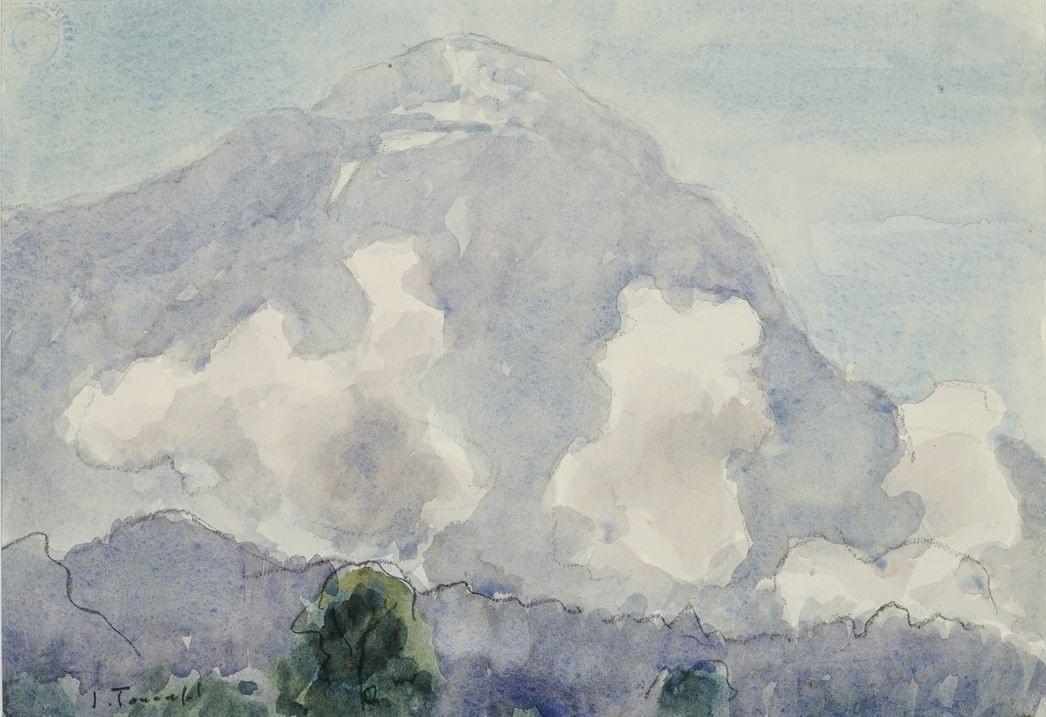 Montagne derrière les nuages, aquarelle sur papier, signée, 24x35 cm
