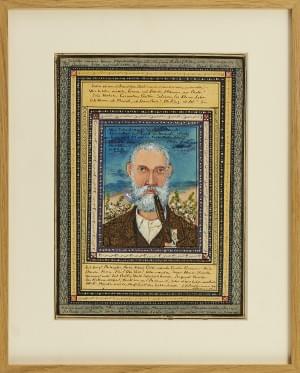 Scène animée dans une scierie et homme barbu, gouache recto vers...
