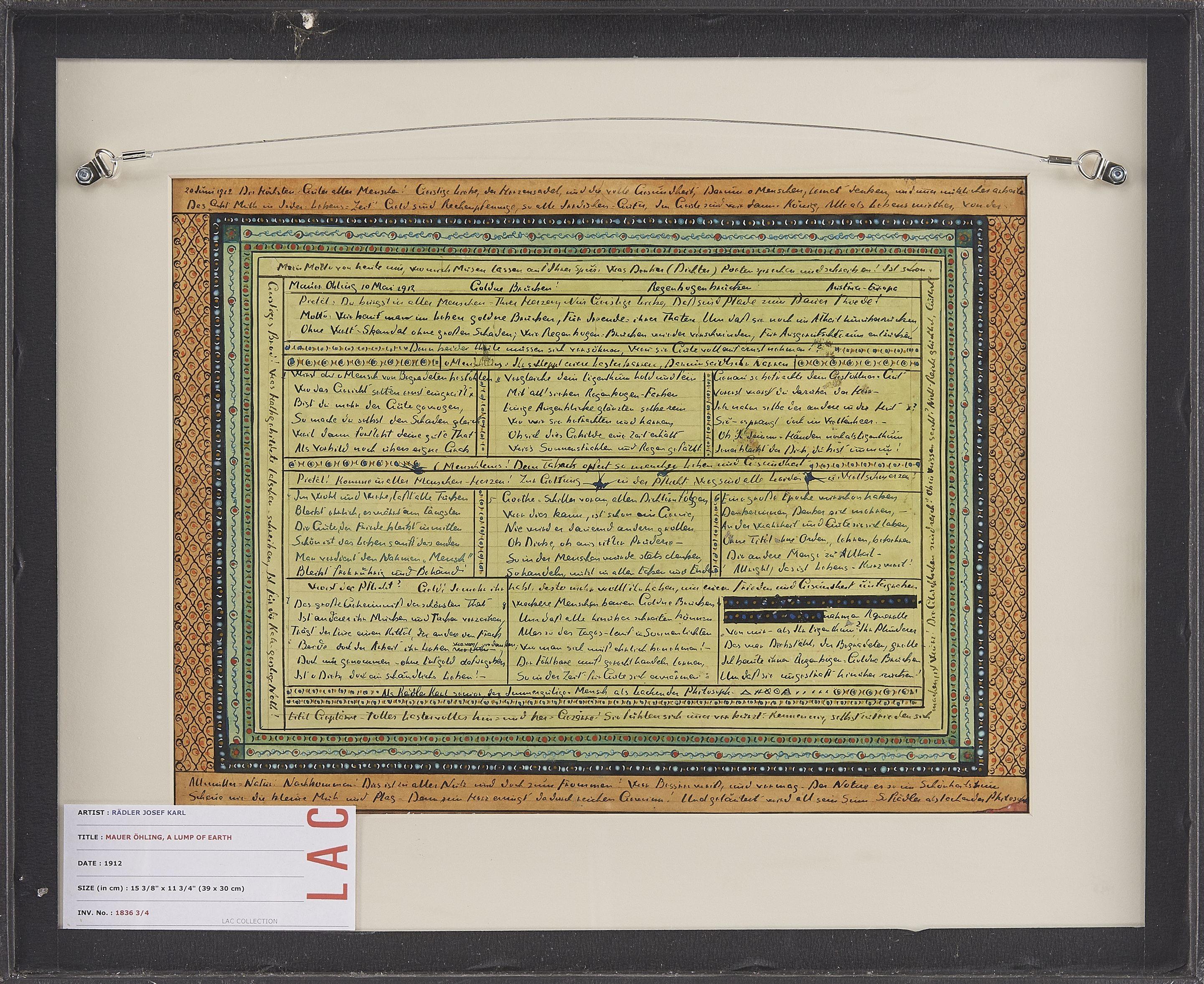 Scène animée dans une scierie et homme barbu, gouache recto vers...