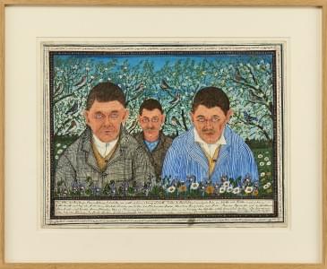 Homme barbu à la pipe et oiseaux branchés, gouache recto verso,...