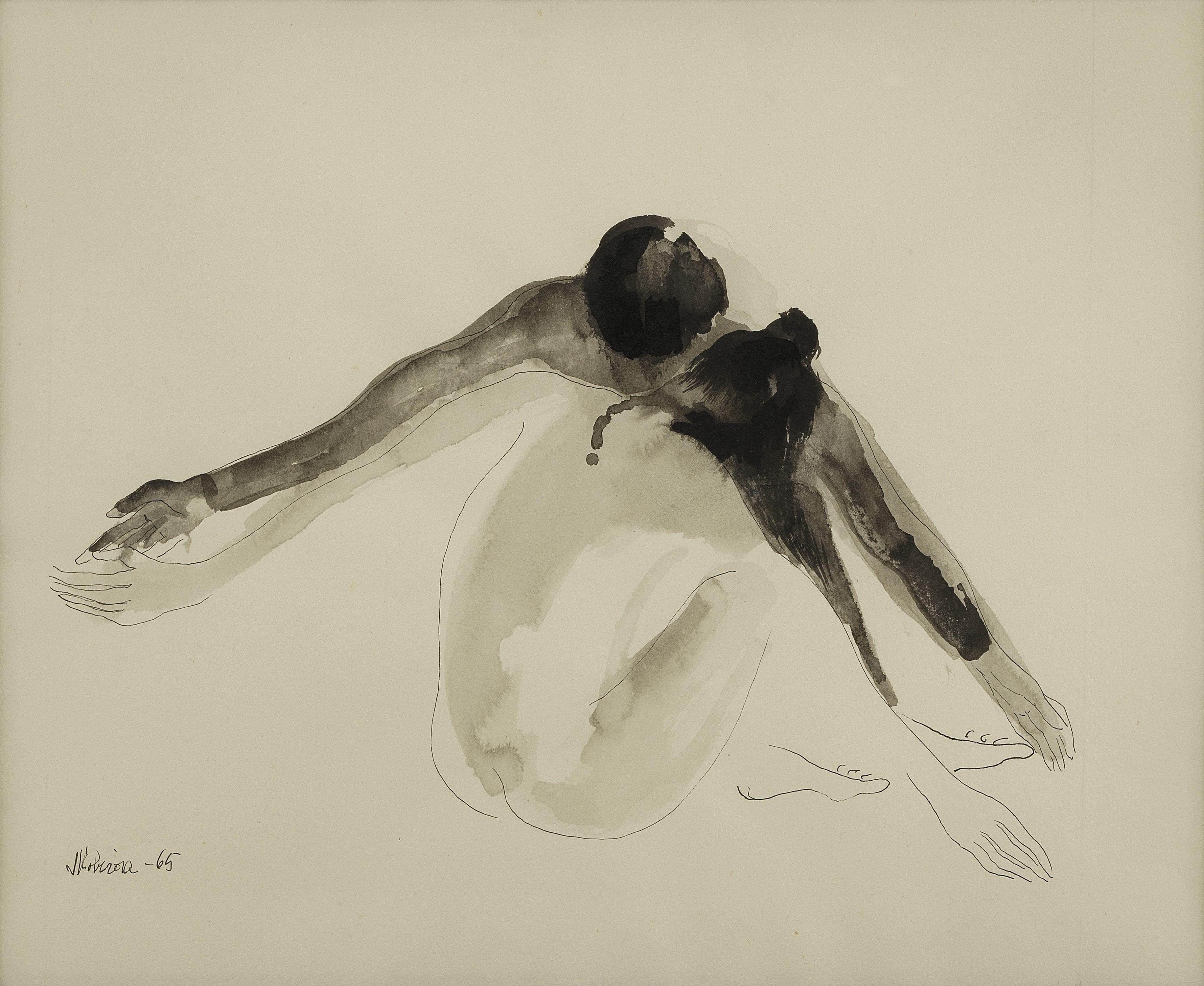 Personnages, lavis, signé et daté 65, 30x37 cm. Provenance: Collection Prince et Princesse de Savoie. Provenienza: Collezione Principe e Principessa di Savoia