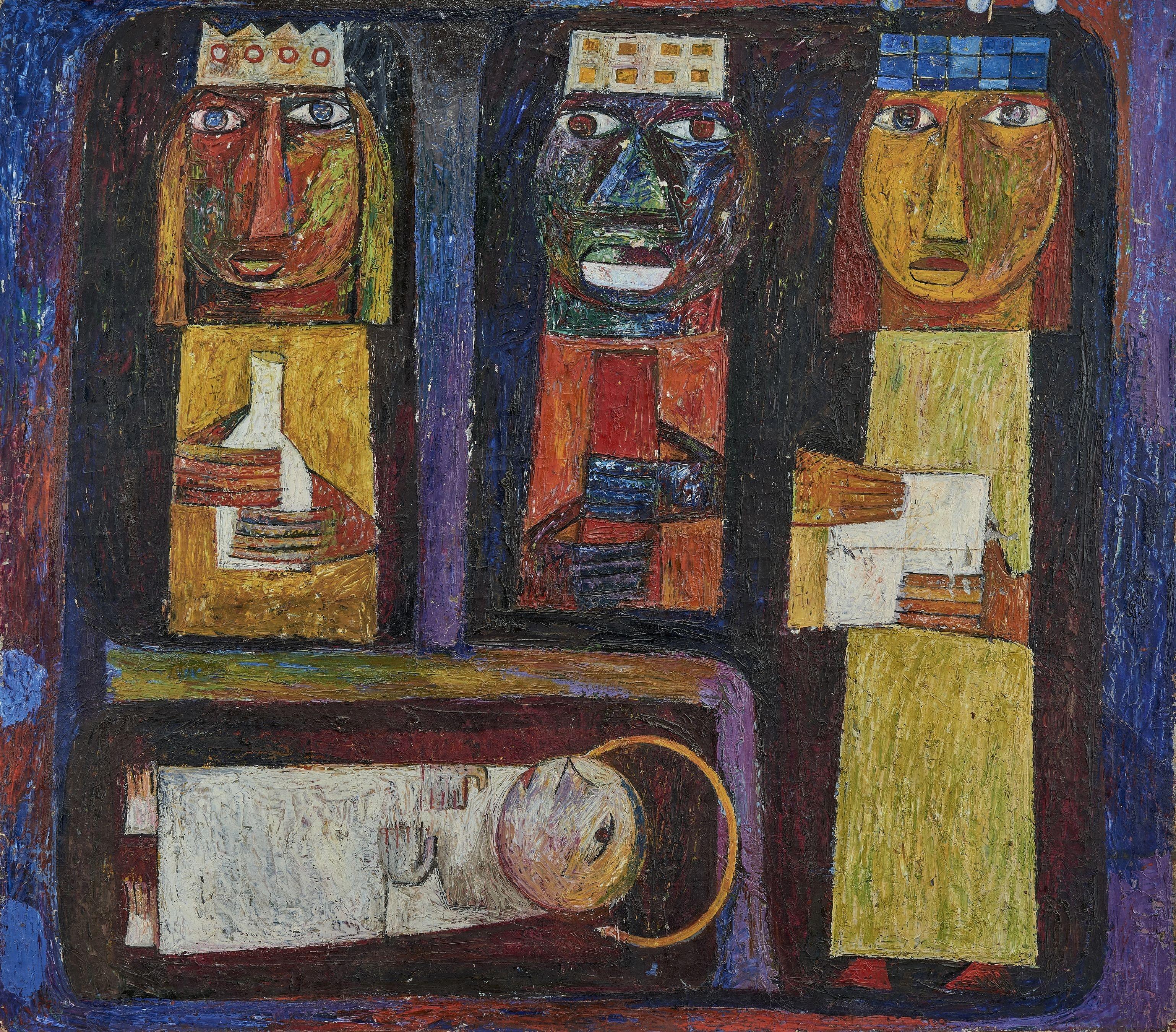 Les mages, huile sur toile marouflée sur panneau, 86x93 cm