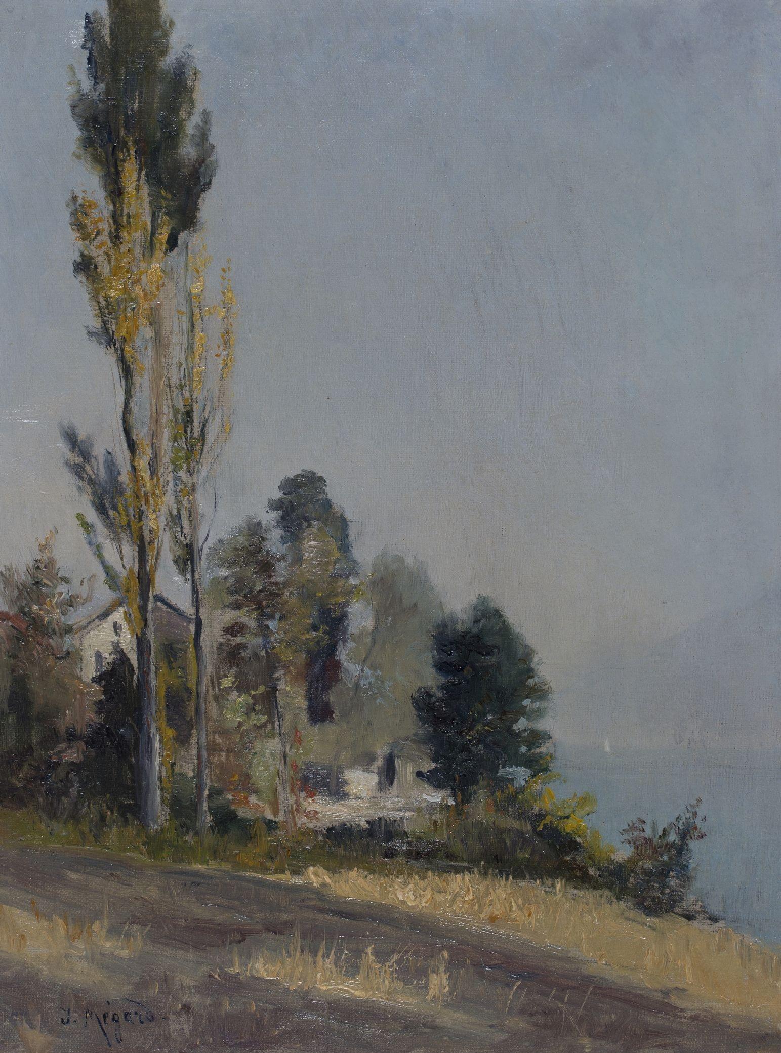 Paysage à l'arbre, huile sur toile, signée et datée 97, 22x35 cm