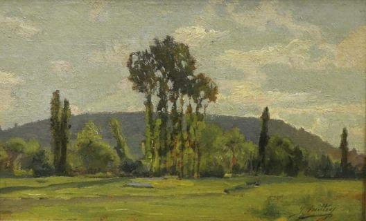 Chevaux près du moulin, huile, signée et datée 1893, 26x35 cm