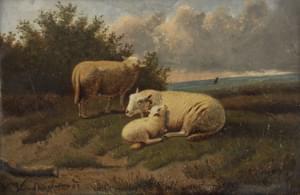 Moutons, huile sur panneau, signée et datée 85, 16x23 cm