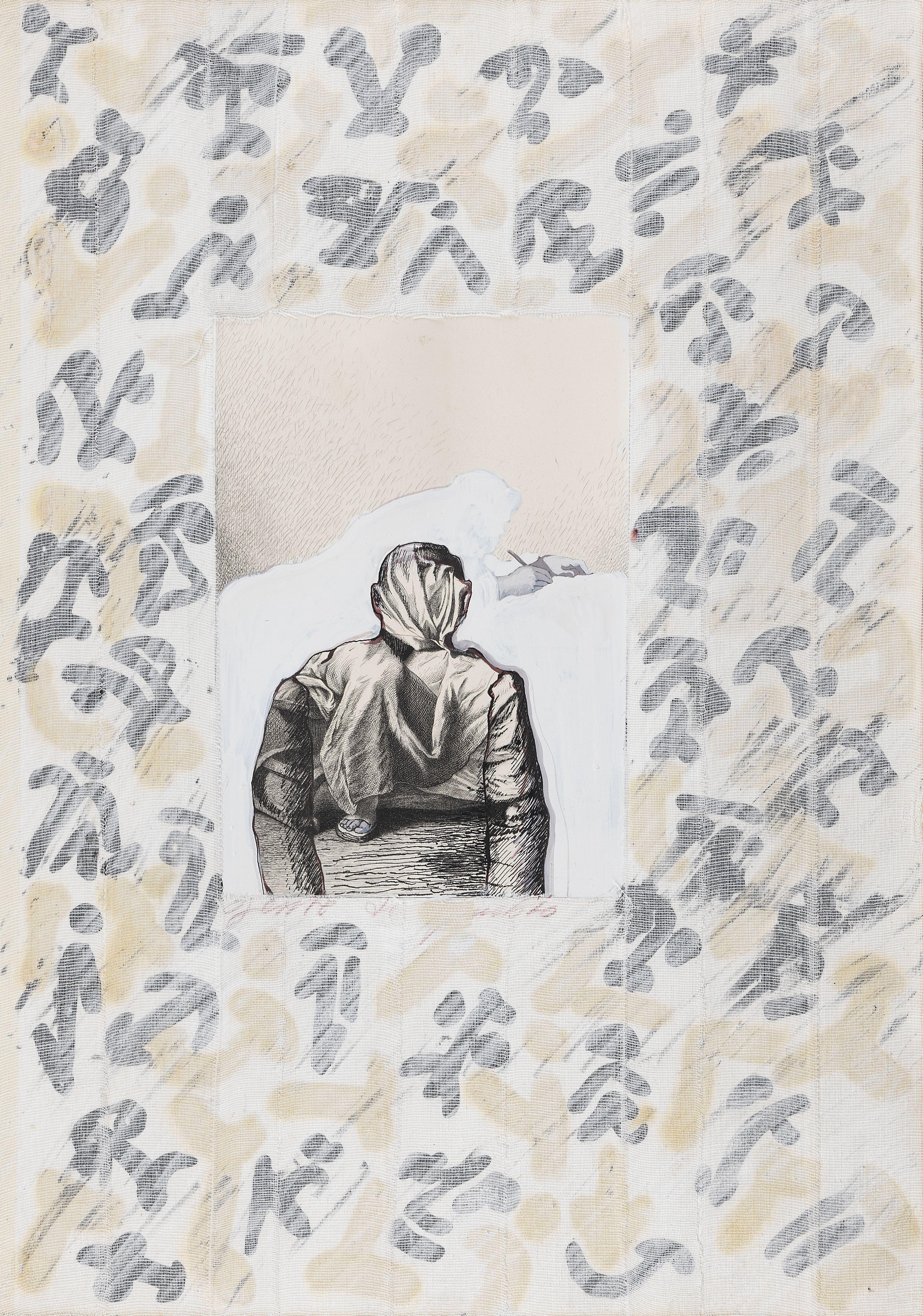 Visages, huile sur toile, monogrammée et datée, 116x116 cm
