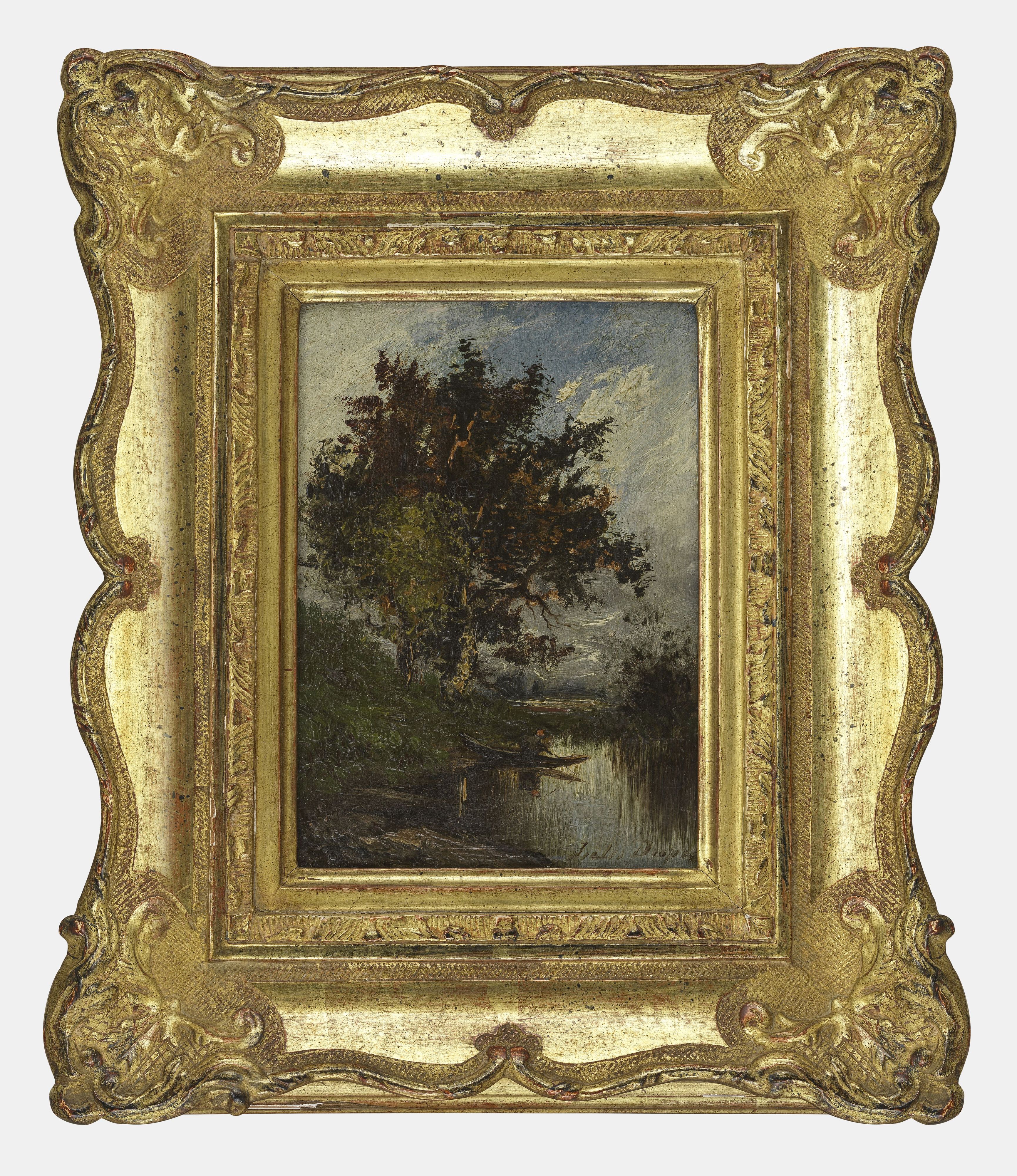 Paysage à la mare, huile sur toile, 31,5x39 cm