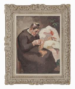 Le traîneau, huile sur toile, signée, 54x67 cm