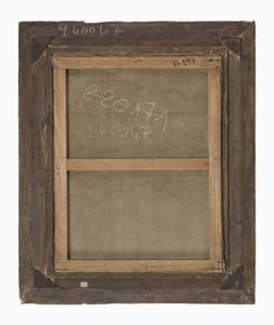 Personnages au bord d'un étang, huile sur panneau, signée, 39x46...