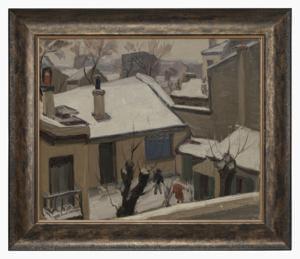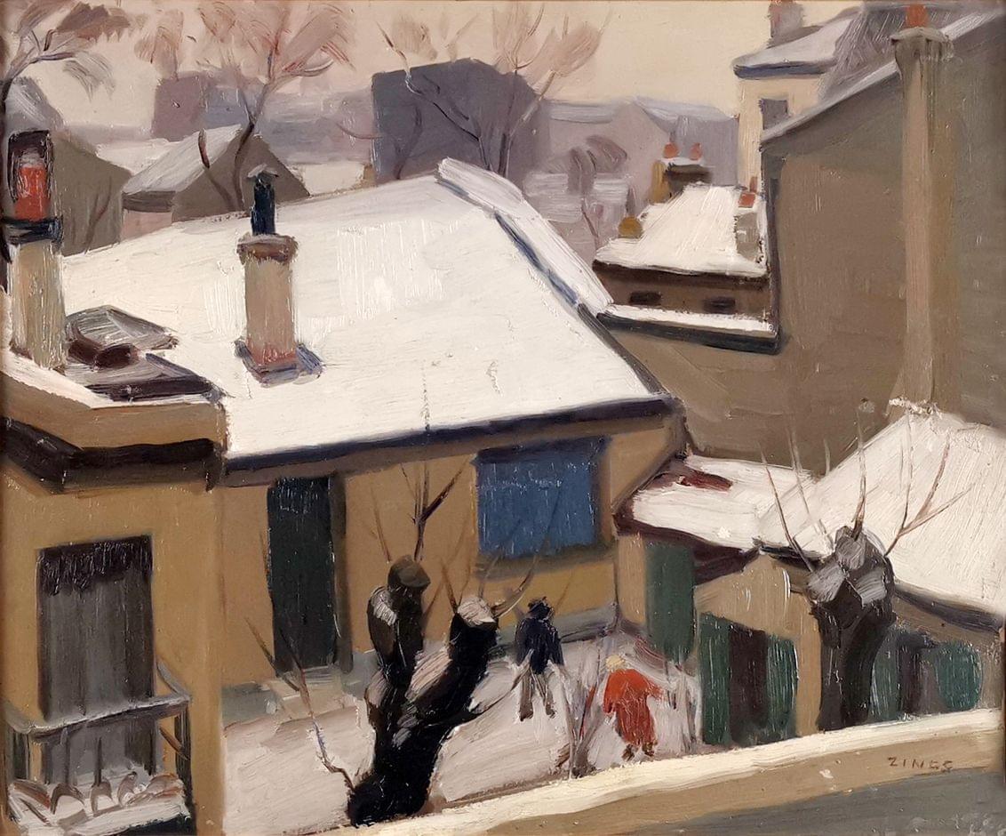 Le traîneau, huile sur toile, signée, 54x67 cm