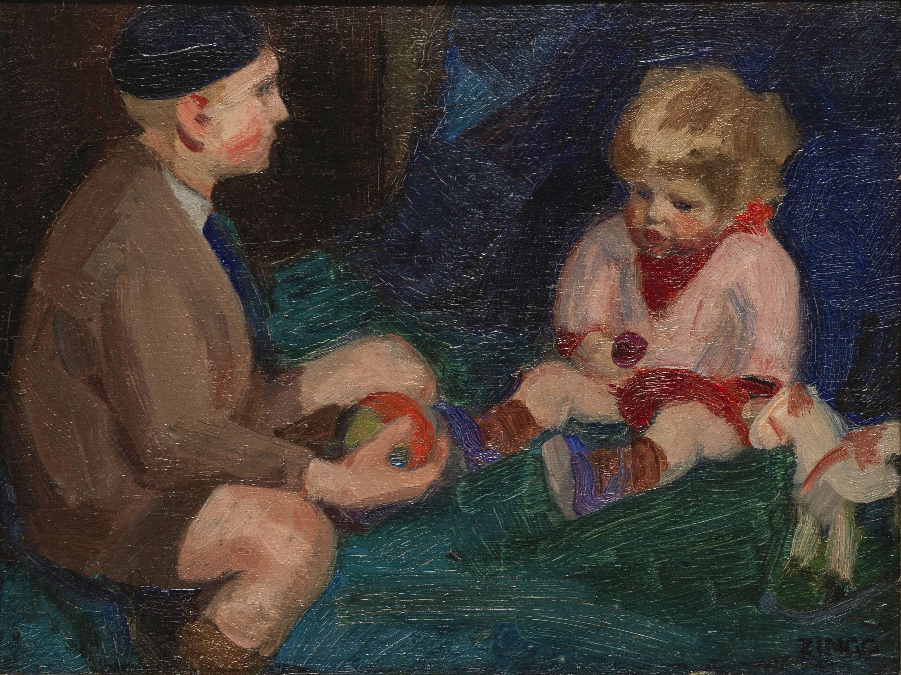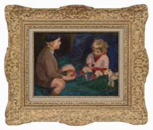 Grand-mère et enfant, huile sur toile, signée, 65x50 cm