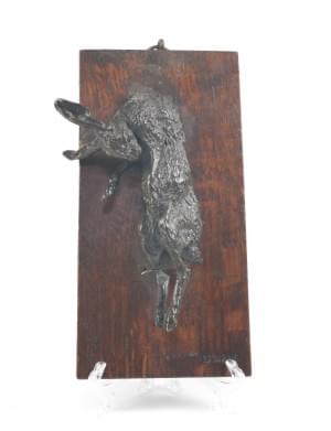 Trophée au lièvre, bronze et support en chêne, signé, 14x7x3,5 c...