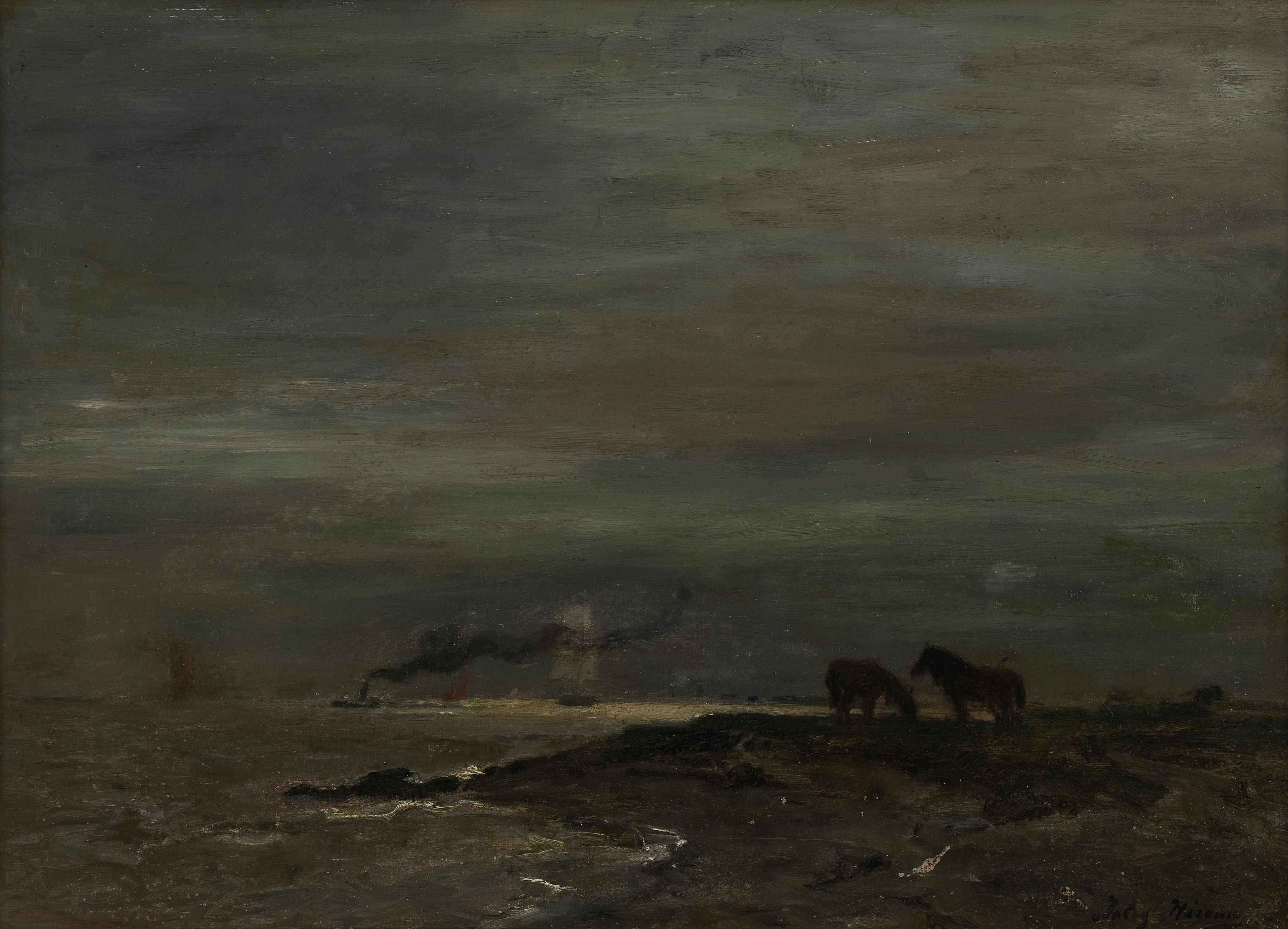 Chevaux au bord de la Tamise, huile sur toile, signée, 43x58 cm