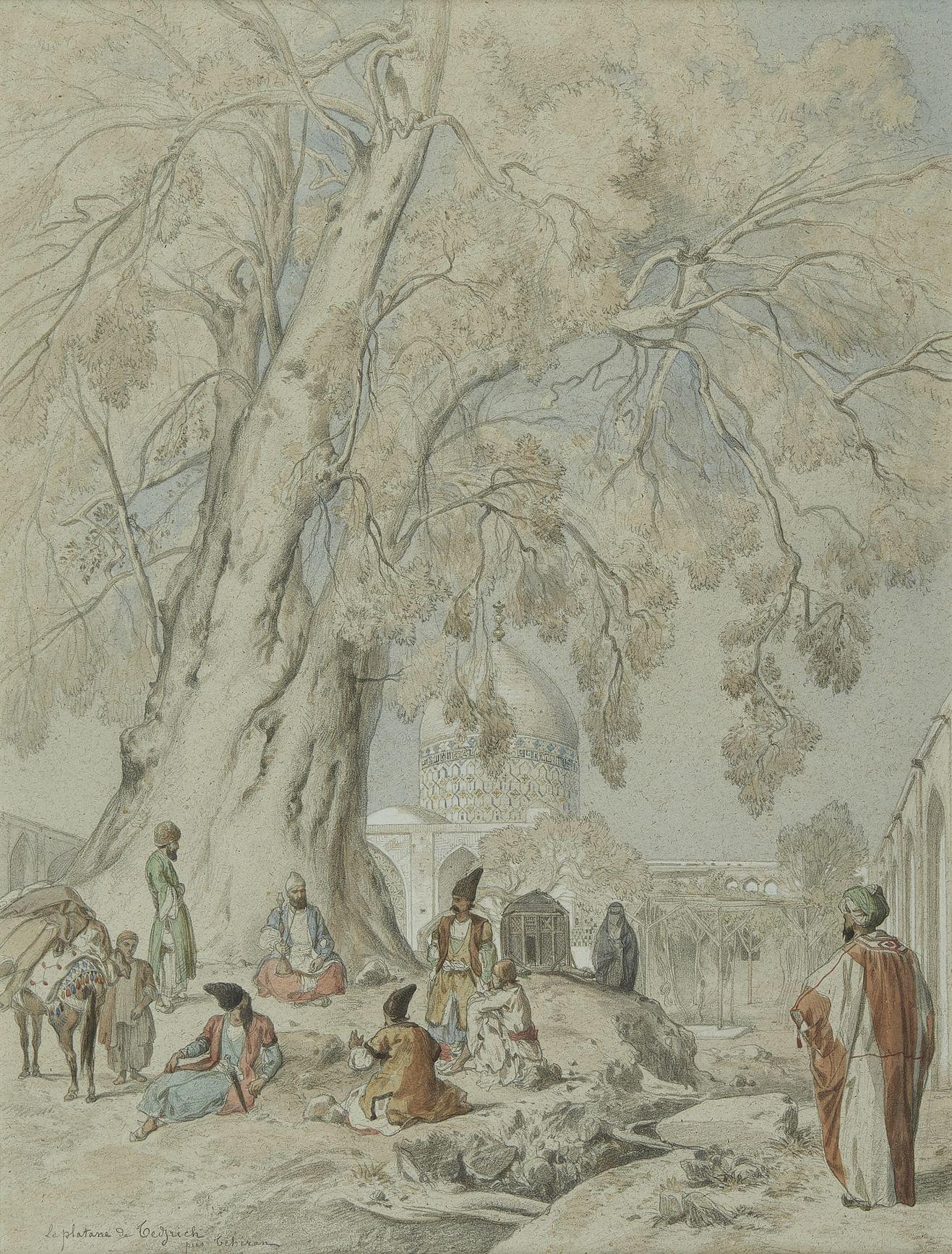 Téhéran, vue prise en arrivant de Casbinn, aquarelle intitulée à...