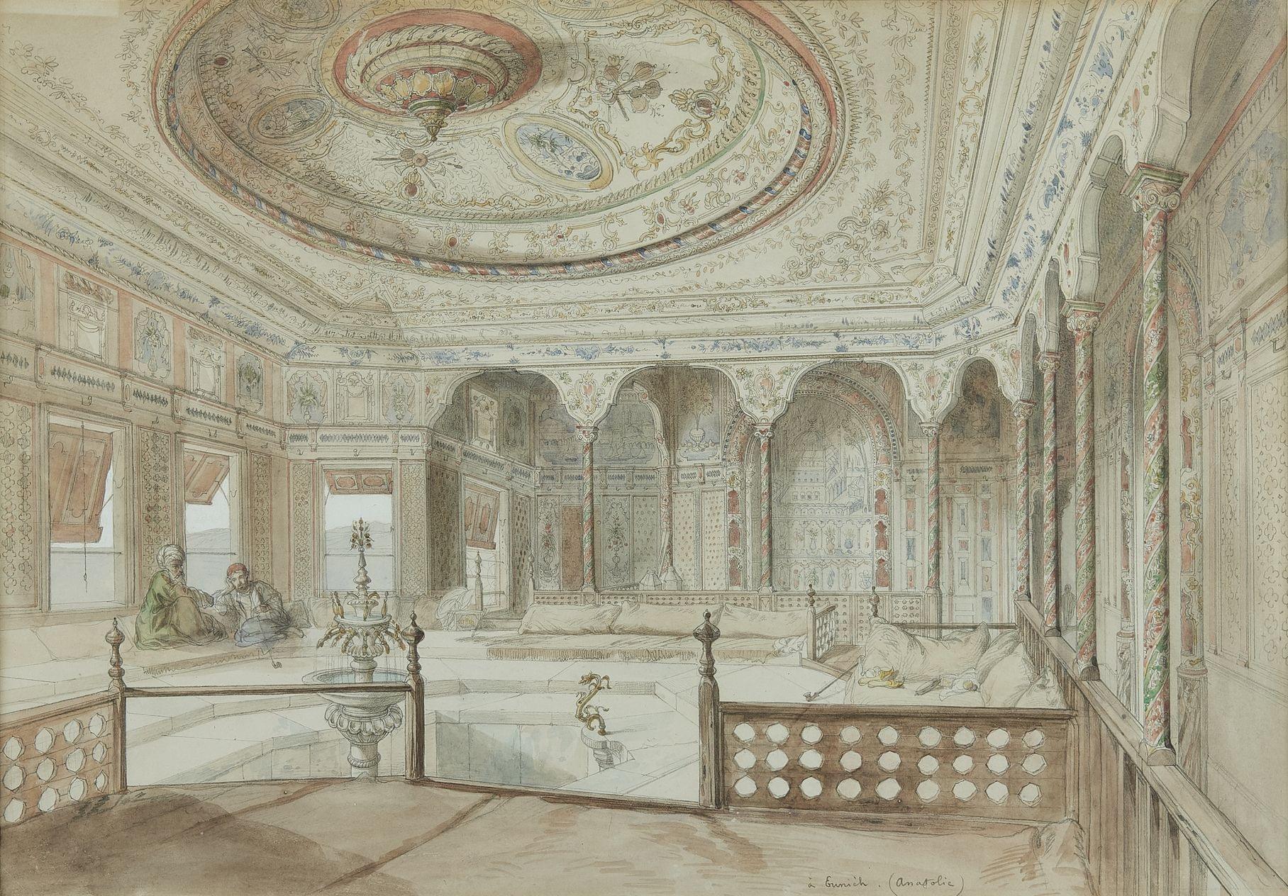 Salon de la mission de France à Téhéran, aquarelle intitulée à l...