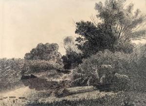 Paysage, encre sur papier signée Albrecht, 41x57 cm. Provenance...