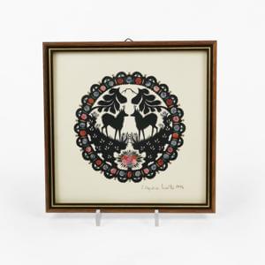 Découpage avec bouquetins, signé et daté 1994, D 14 cm