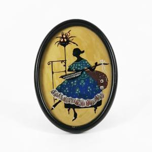 Silhouette à la guitare, peinture sous verre, 17x13 cm