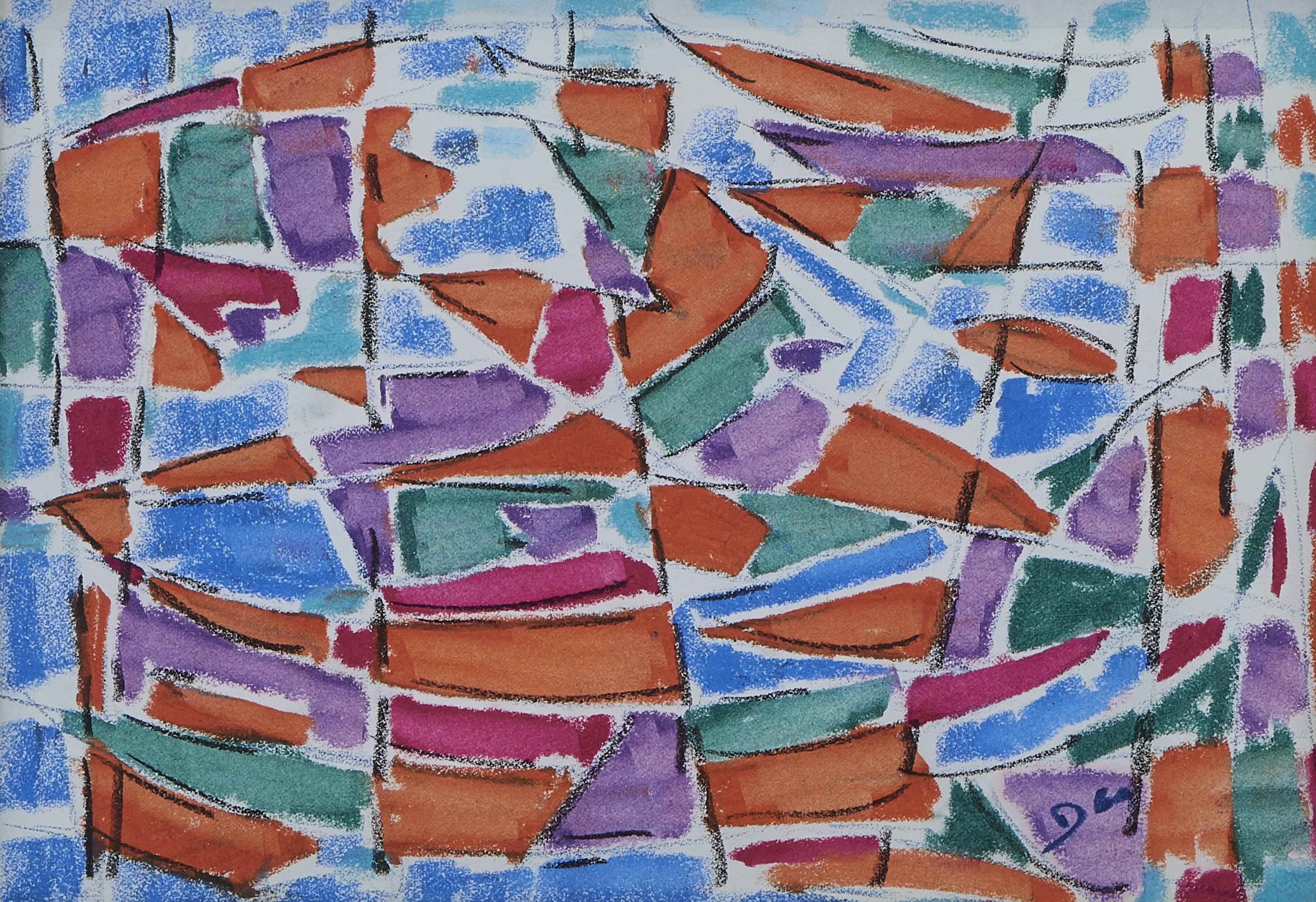 Abstraction, gouache et mine de plomb sur papier, monogrammée et...