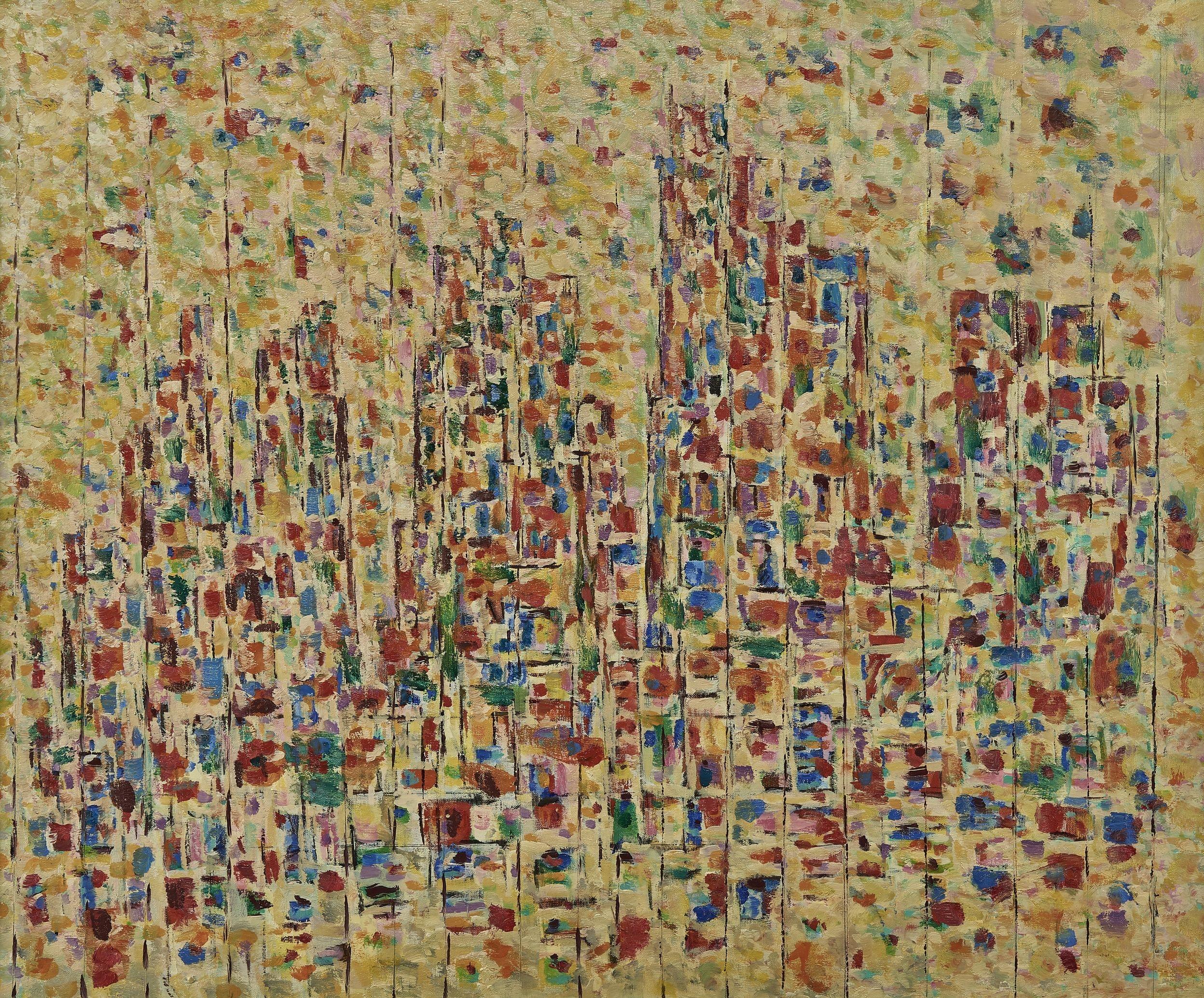 Vue d'un village, huile sur pavatex, cachet de l'atelier au dos,...