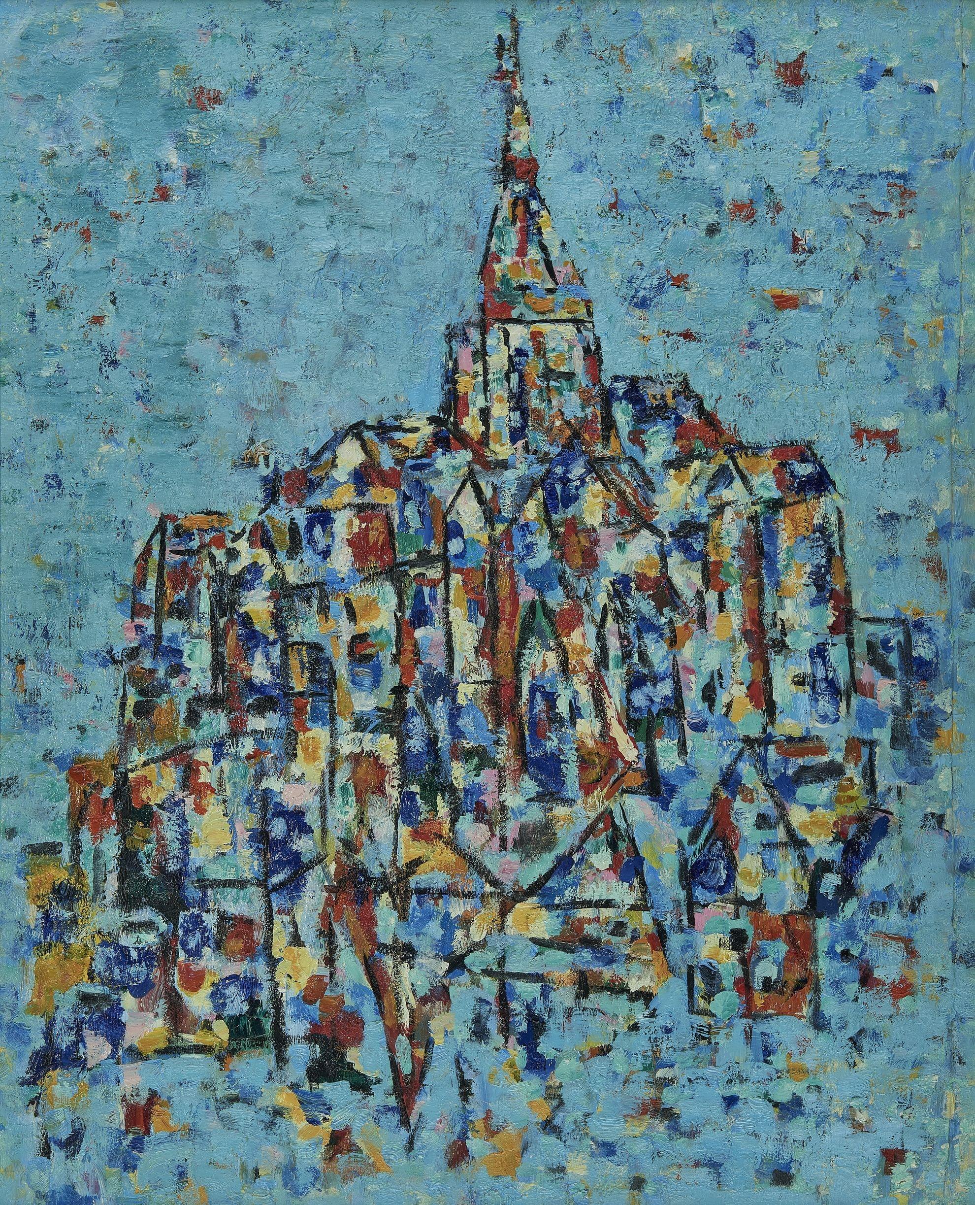 L'Evêque, huile sur pavatex, signée et datée 2001 au dos, 120x80...