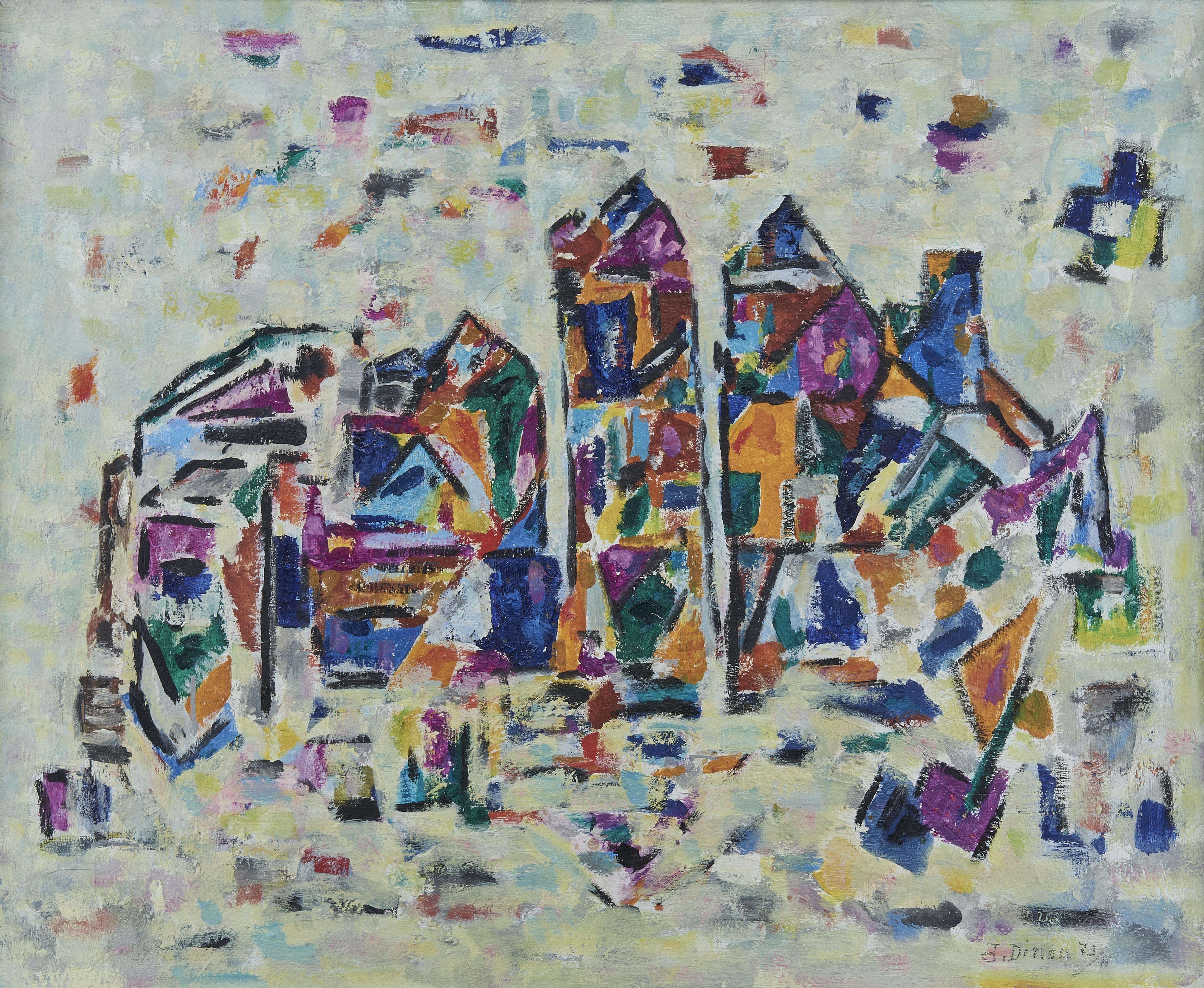 Vue d'un village, huile sur pavatex, signée, 33x41 cm