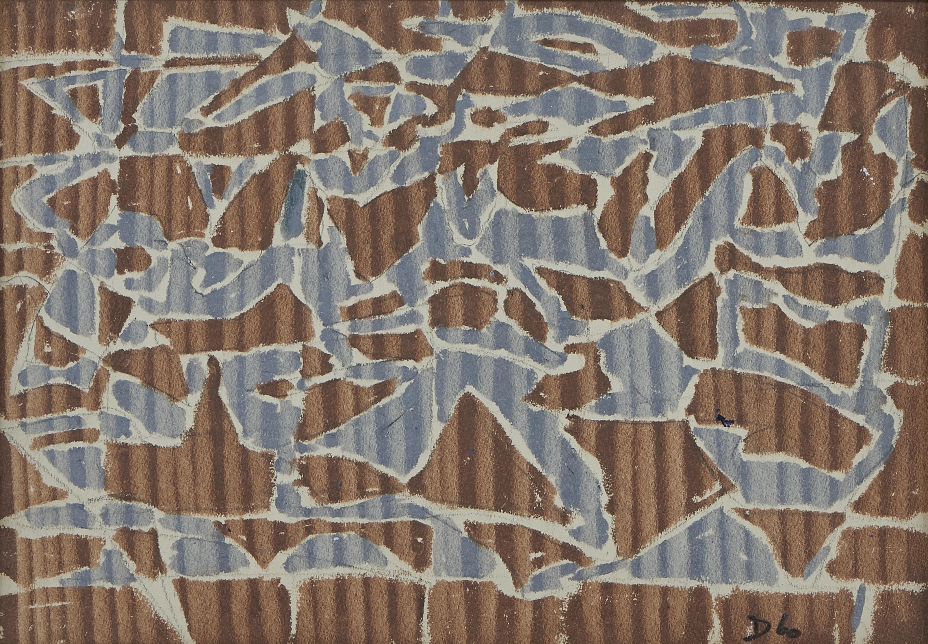 Abstraction, gouache et mine de plomb sur papier, monogrammée et...
