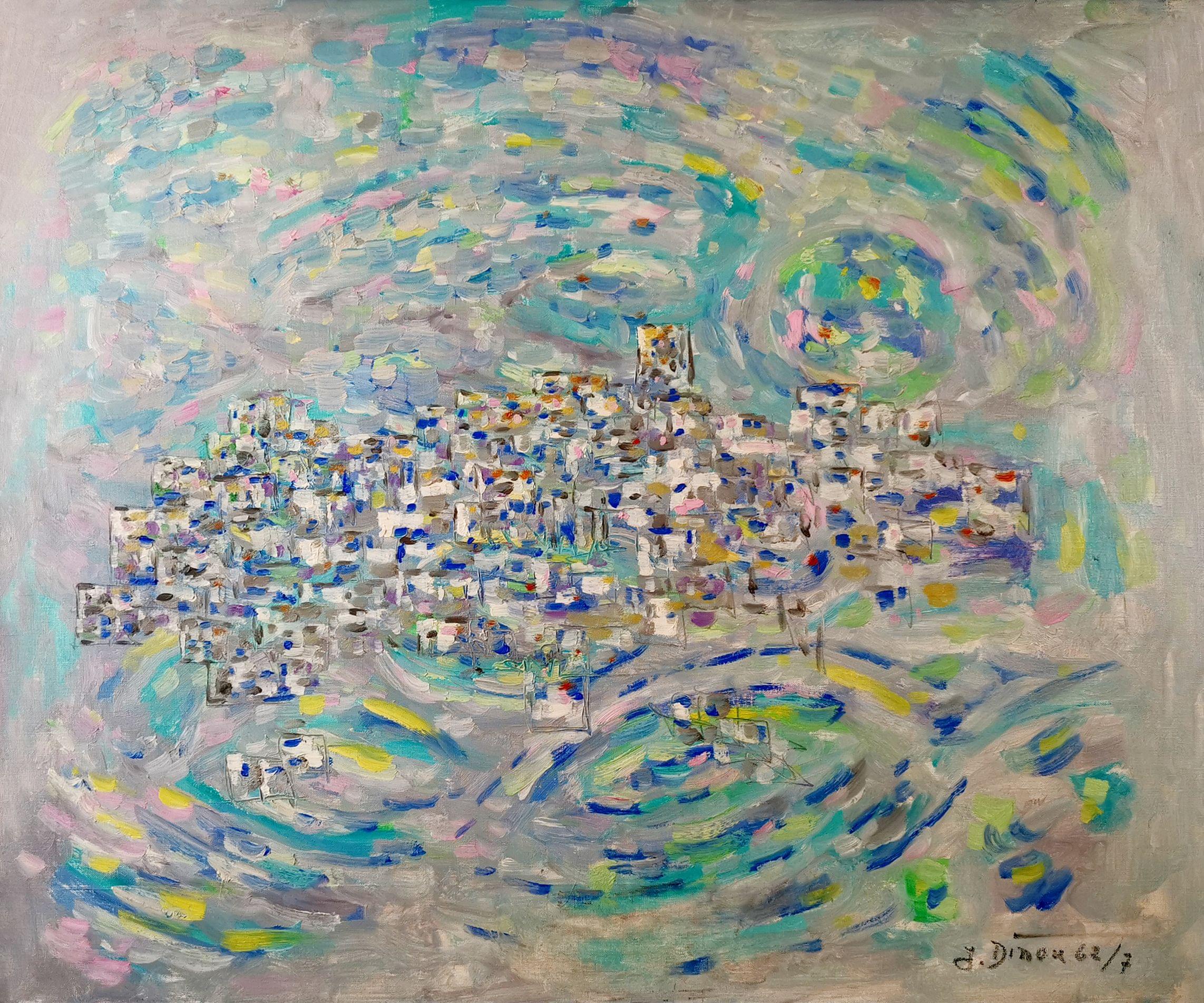 Femmes sur un chemin, huile sur toile signée, 61x40 cm