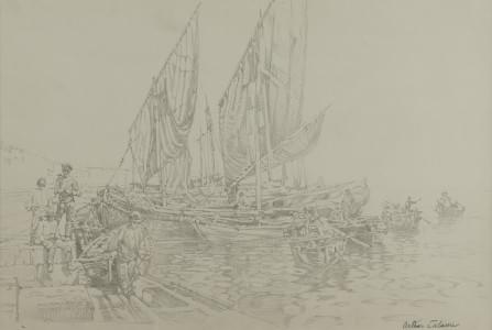 Deux études de bateaux au port, mine de plomb sur papier, signée...
