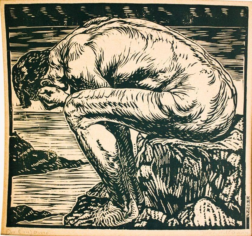 Le penseur, bois gravé sur papier, signé, 43x50 cm