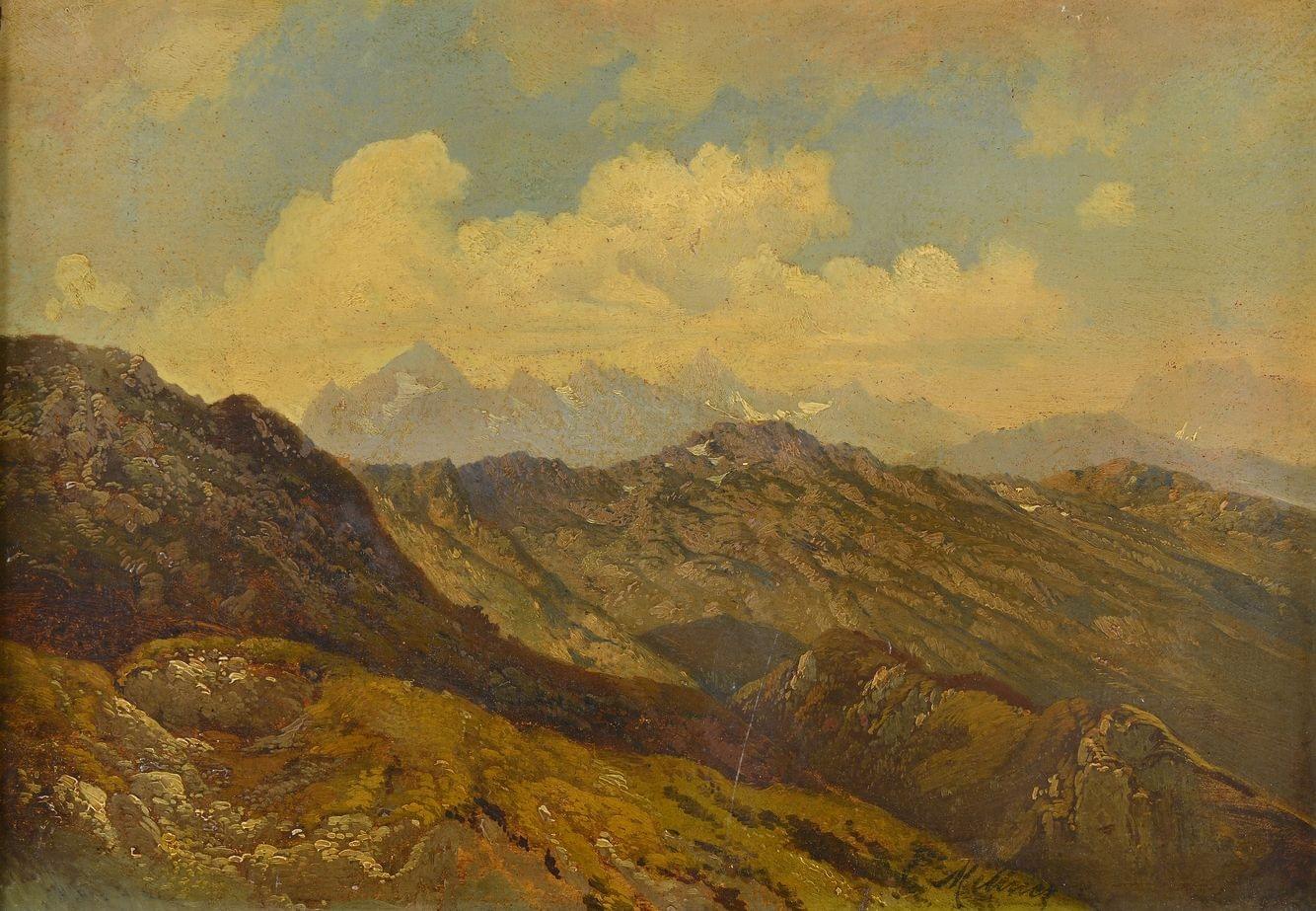 Paysage de haute montagne, huile sur papier marouflé sur toile, signé, 28x40 cm