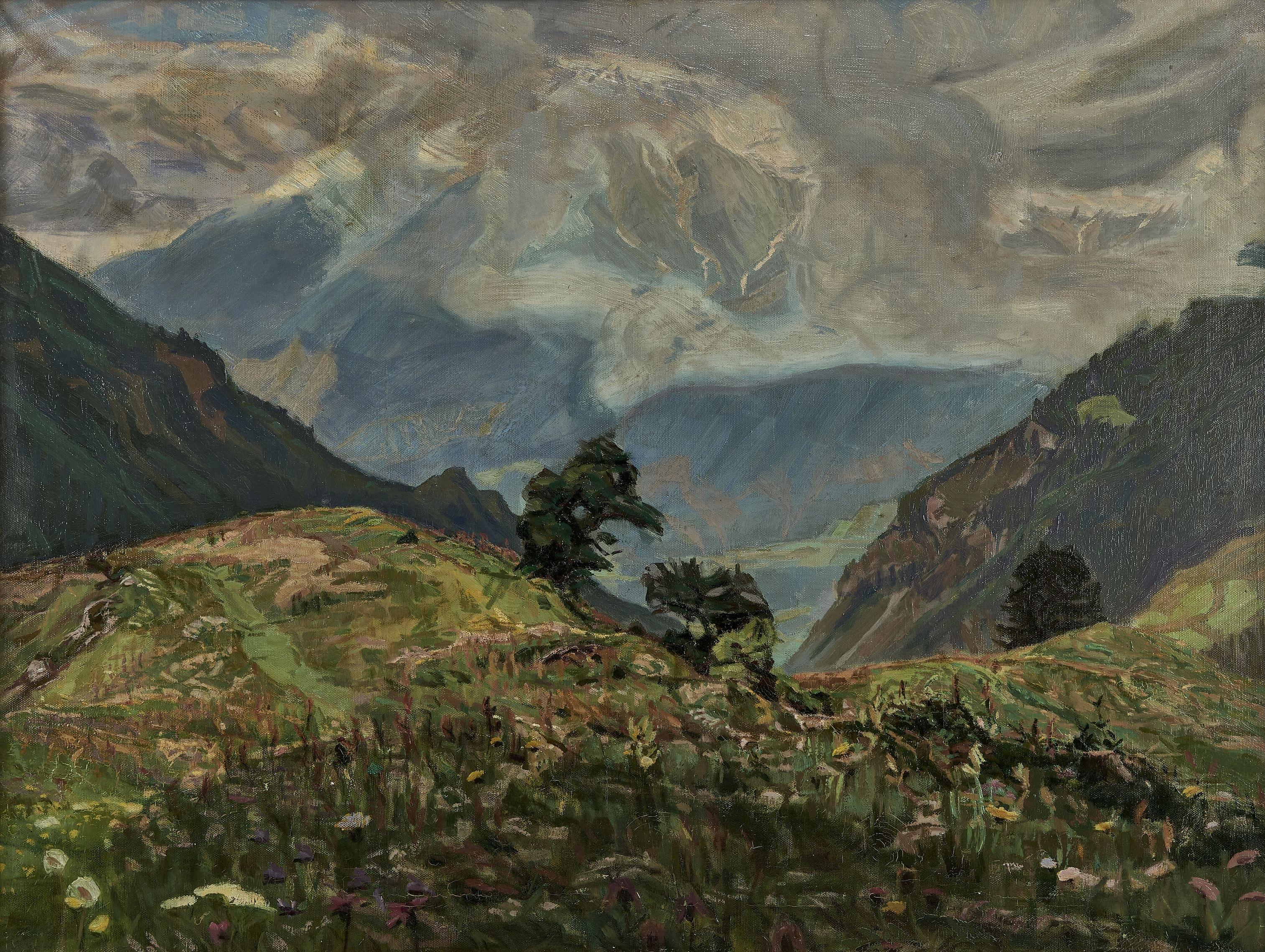 Chalet dans les pâturages, huile sur carton, signée, 41x31 cm