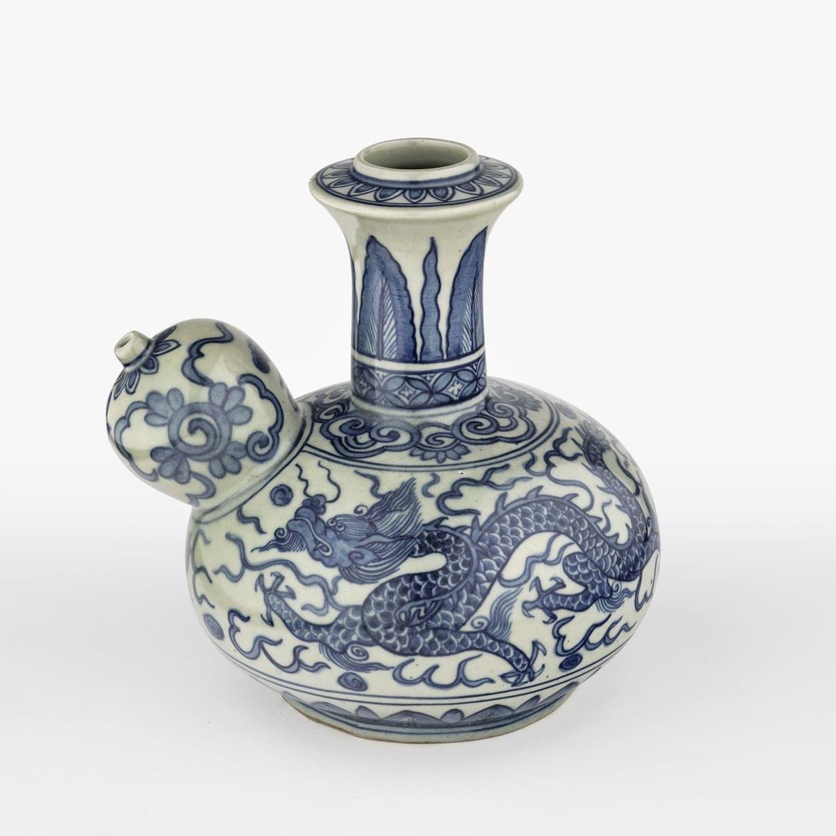 Porcelaine à décor blanc bleu de deux dragons, H 20,5 cm