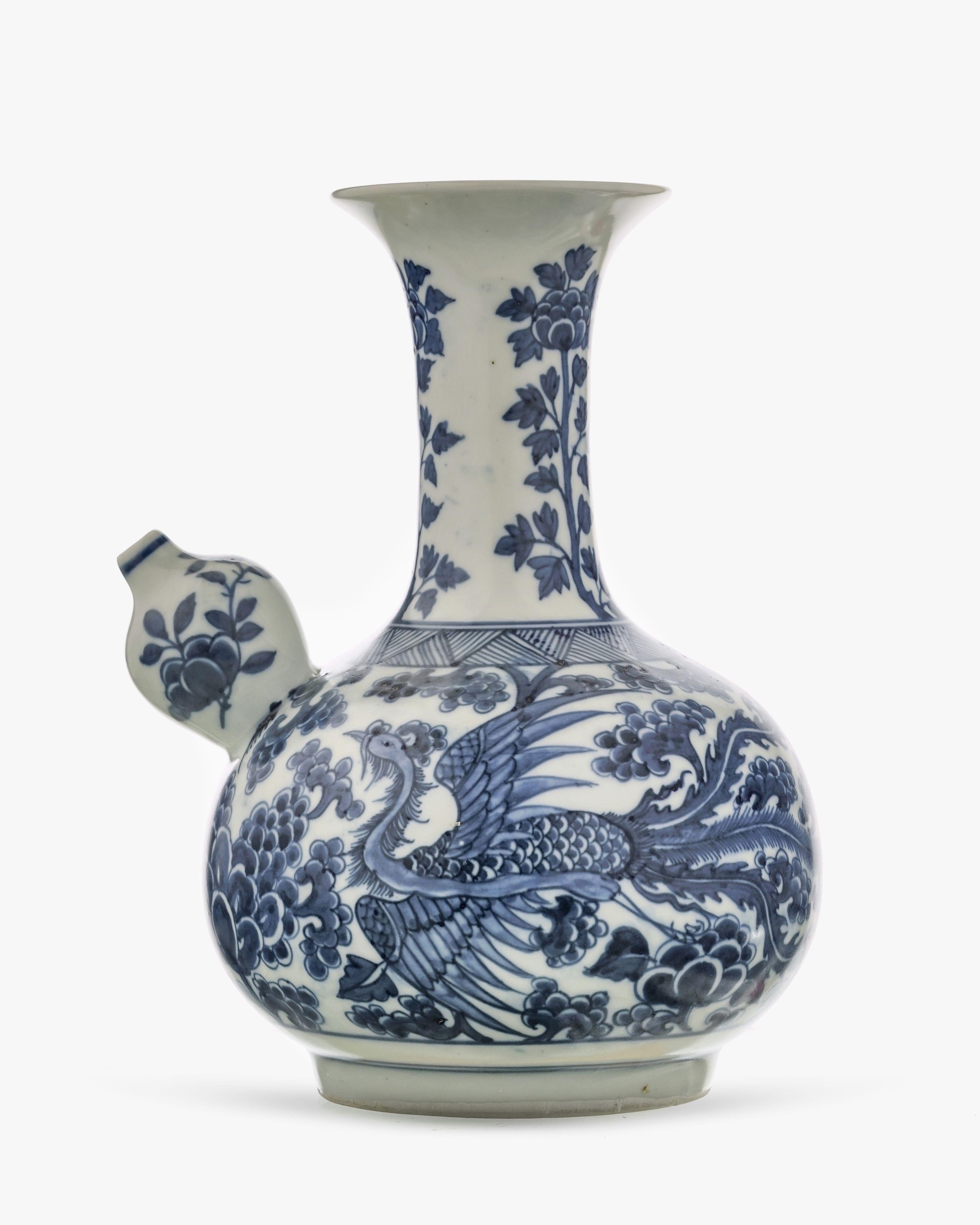 Porcelaine bleu blanc à décor de deux phénix, H 27 cm
