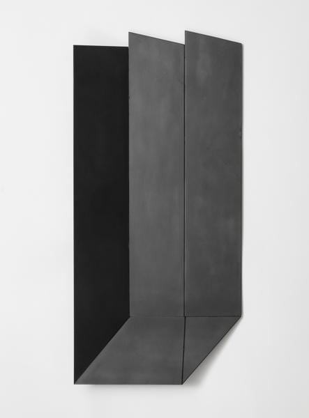 Sculpture moderniste, métal noir et acier, signée, datée 89 et n...