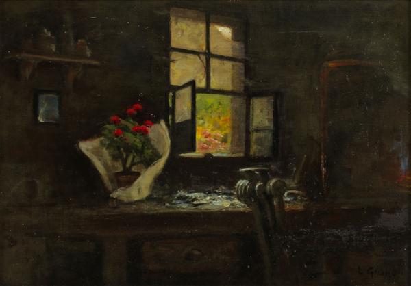 Vue d'intérieur, huile sur toile, signée, 32x45 cm