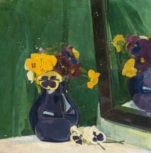 Branches en fleurs, huile sur toile, signée, 19,5x19,5 cm